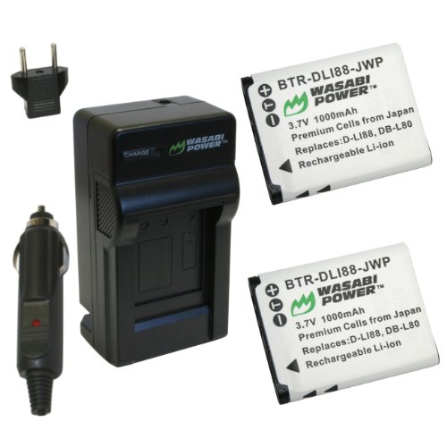 The Wasabi Power battery and charger kit includes 2 batteries and one charger with a European plug and car adapter. All items meet or exceed OEM standards and come with a 3-year manufacturer warranty. Batteries replace: Pentax D-LI88; Charger replaces: Pentax K-BC88, D-BC88Available at Amazon Check Price Now!